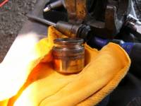 しかし、キャブを外す時に、エアクリボックスを外して後ろにずらしたんですが、「じょー」と何やら液体が漏れており、みると、大量のオイルでありました。エアクリエレメントに付着していたオイルがたまっていたようですね。私は、昔からTwinAirの青いオイルを使っているので、これはきっと、どっかのバイク屋の仕業だな。ボックスを奇麗に掃除するのに、1日かかりましたよ。