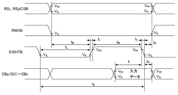 - RS信号は、レジスタセレクトでだいたい、制御コマンドの時はRS=0、データのR/WにはRS=1となる。