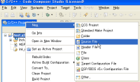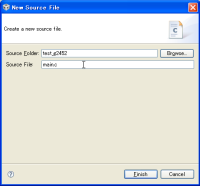プロジェクト画面から、ソースファイルを作成、とりあえず、main.cで。