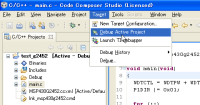 ソース作ったら、ビルドする。成功したら、Debug Active Project をすると、デバッグモードになる。