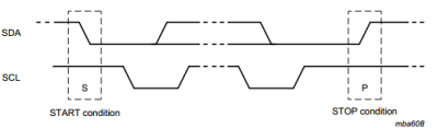 - START 条件とは、SCL が High のときの SDA の High から Low への遷移です。