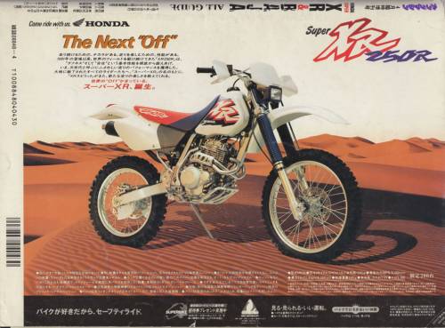 雑誌の裏表紙にあった、XR250R。何かが違う、やっぱりRじゃなきゃねー。