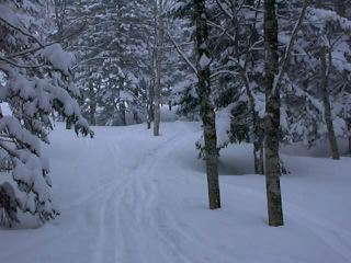 かえりの林道はかなり疲れます。あまり滑っていかない上に果てしなく長い。